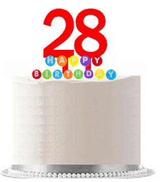 Item#028WCD – Happy 28th Birthday Party Red Cake Topper & Rainbow Candle Stand Elegant Cake Decoration Topper Kit