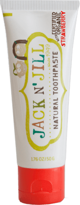A fruity experience The Jake N Jill Toothpaste contains natural, organically certified flavours that are tasty and absolutely safe. It contains protecting xylitol as well as gum-soothing, organic calendula. 6 months+ and adults Free from: fluoride sugar colourants SLS gluten BPS SMO palm oil synthetic preservatives Ingredients (INCI): Blueberry: Xylitol, Purified Water, Vegetable Glycerin (from coconut), Silica, Certified Organic Natural Flavor* (Vaccinium Angustifolium), Xanthan Gum, Certified Organic Calendula Officinalis Extract**, Potassium Sorbate (Naturally Derived), Citric Acid Blackcurrant: Xylitol, Purified Water, Vegetable Glycerin (from coconut), Silica, Certified Organic Natural Flavor* (Ribes Nigrum), Xanthan Gum, Certified Organic Calendula Officinalis Extract**, Potassium Sorbate (Naturally Derived), Citric Acid Strawberry: Xylitol, Purified Water, Vegetable Glycerin (from coconut), Silica, Certified Organic Natural Flavor* (Fragaria Chiloensis), Xanthan Gum, Certified Organic Calendula Officinalis Extract**, Potassium Sorbate (Naturally Derived), Citric Acid Raspberry: Xylitol, Purified Water, Vegetable Glycerin (from coconut), Silica, Certified Organic Natural Flavor* (Rubus Idaeus), Xanthan Gum, Certified Organic Calendula Officinalis Extract**, Potassium Sorbate (Naturally Derived), Citric Acid Banana: Xylitol, Purified Water, Vegetable Glycerin (from coconut), Silica, Certified Organic Natural Flavor* (Musa Paradisiaca), Xanthan Gum, Certified Organic Calendula Officinalis Extract**, Potassium Sorbate (Naturally Derived), Citric Acid Flavor Free: Xylitol, Purified Water, Vegetable Glycerin (from coconut), Silica, Xanthan Gum, Certified Organic Calendula Officinalis Extract**, Potassium Sorbate (Naturally Derived), Citric Acid * USDA Certified Organic Ingredient, ** NASAA Certified Organic & Biodynamic Ingredient
