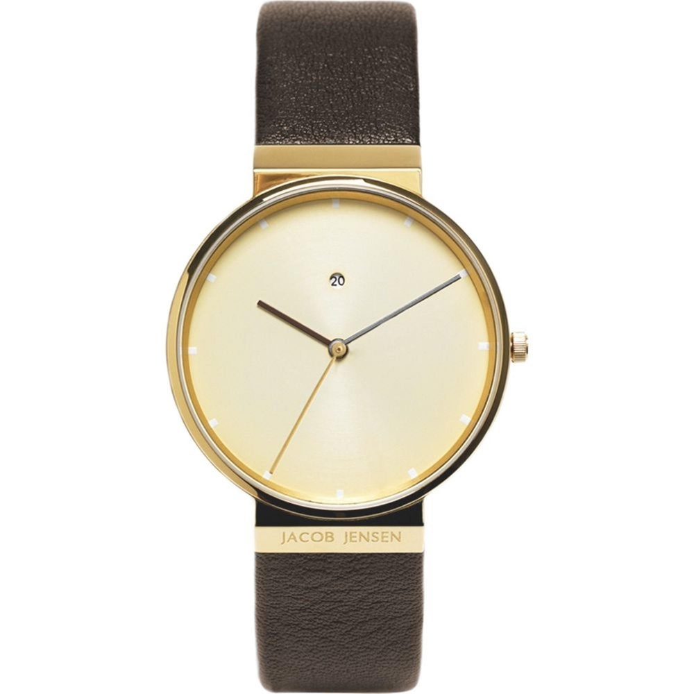 Item Shape – Round Dial Window Material Type – Sapphire Display Type – Analogue Clasp Type – Buckle Case Material – Gold Tone Stainless Steel Case Diameter – 38 mm Case Thickness – 5 mm Band Material – Leather Band Width – 19 mm Band Colour – Brown Dial Colour – Gold Tone Calendar – Date Weight – 5 Grams Movement – Quartz Water Pressure Resistance – 3 bar Warranty Type – Manufacturer Warranty Description – 2 years Based on the philosophy which for decades has made the design studio behind it, The Danish Jacob Jensen Design, recognized and respected all over the world. Everything superfluous has been removed, and what remain are the pure lines, the material, and the functionality supported by sublime technical quality.. We are a Jacob Jensen UK authorised dealer Brand new boxed stock with full retail boxes & paperwork 2 year warranty