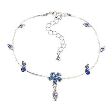 JASSY® Women Fine Anklet Platinum Plated Capri Blue Rhinestone Flower Leaf Pendant Jewelry Gift