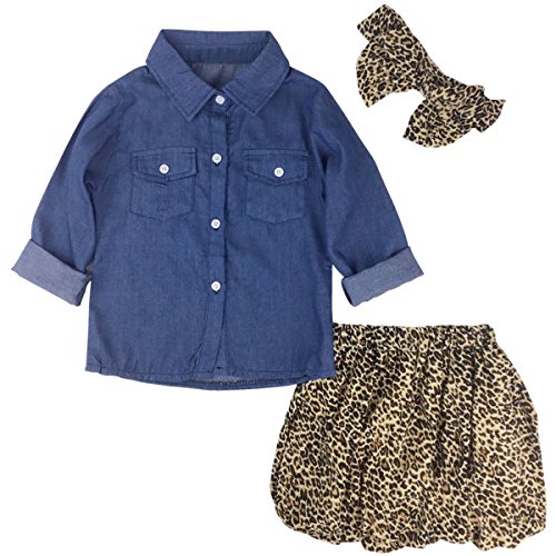 Jastore 3PCS Baby Girls Clothing Set Summer Toddler Kids Denim Tops+Leopard Skirt Outfits (12-18 Months, Leopard)
