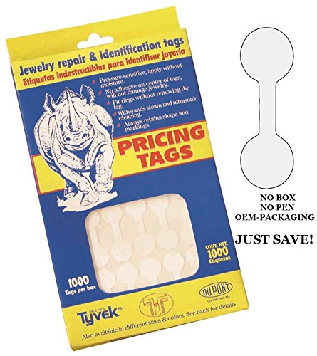 Now you can neatly and professionally put prices on your valuable creations. Just fold the sticker around a strand of jewelry or a ring. Write on it with a regular ballpoint pen, before or after you attach it. The thin strip that wraps around your jewelry has NO adhesive, but the circles do and they stick to each other permanently . Quantity: 1000 round stickers, 35mm end to end. Each circle is 12mm diameter (1/2 inch). NOTE: This is an OEM Packaging to save all our clients money. Large quantity discounts available!!!Pressure-sensitive, apply without moisture.