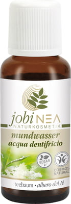 Suitable for daily use jobiNEA’s Mouthwash is enriched with tea tree oil, myrrh, sage oil and mint that freshens your breath and provides optimal dental care. Suitable for daily use. Application: Dissolve 10 – 15 drops of mouthwash in approximately 100 ml of lukewarm water and rinse your mouth. Alternatively, pour drops directly onto the toothbrush.
