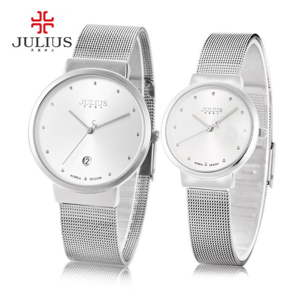 Julius JA 426 Couple Ultrathin Stainless Steel Mesh Band Quartz Wrist Watch