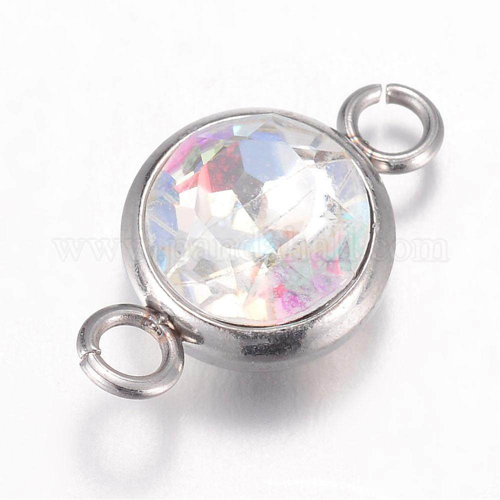 K9 Glass Links/Connectors, Faceted, with 304 Stainless Steel Findings, Flat Round, Stainless Steel Color, Crystal ABSize: about 10mm wide, 17.5mm long, 6.5mm thick, hole: 2.5mm.