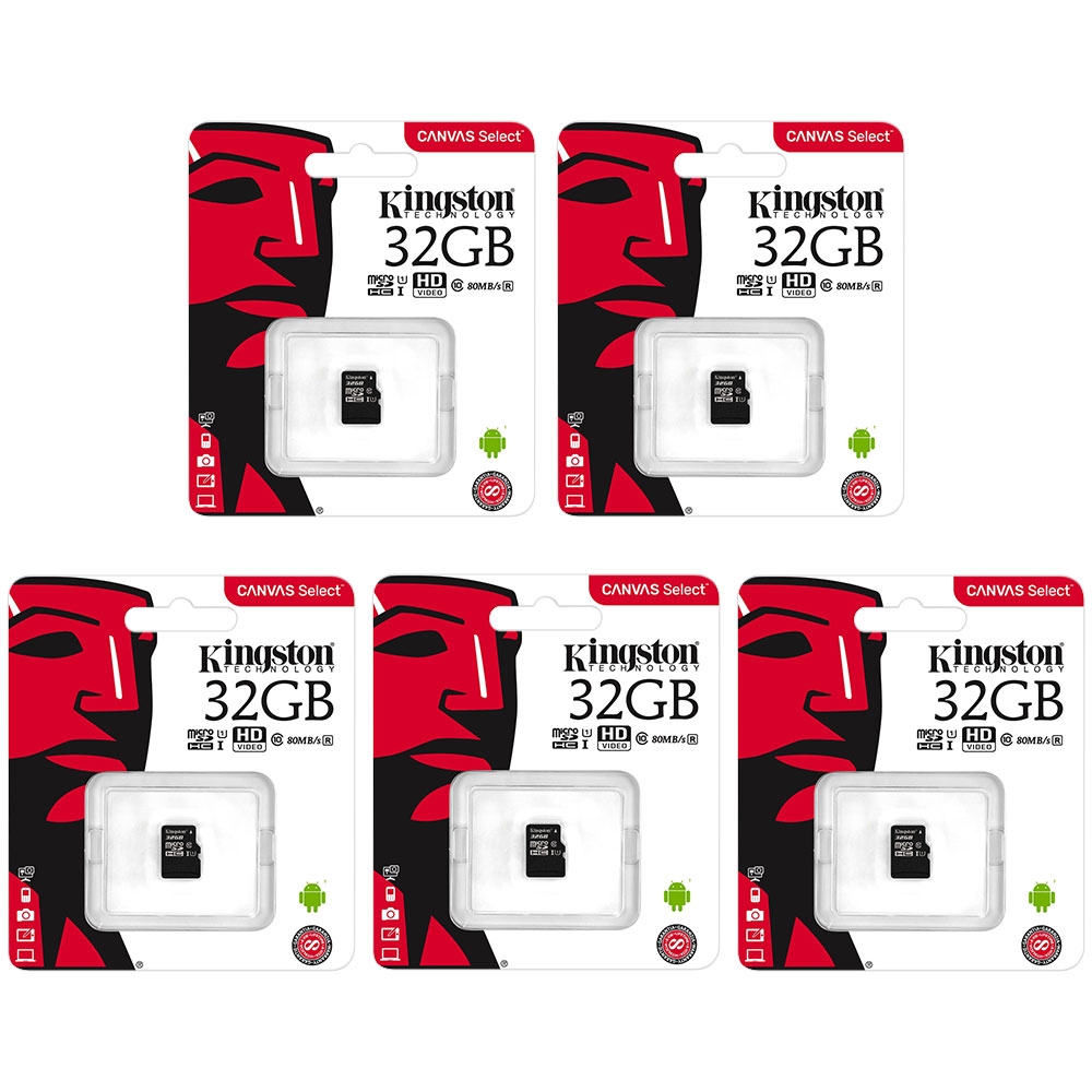 Kingston Canvas Select Micro SD SDHC Memory Card 80MB/s UHS-1 Class 10 – 32GB – Value 5 Pack