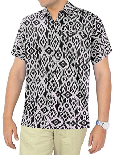 LA LEELA Aloha Hawaiian Tropical Beach Solid Plain Mens Casual Short Sleeves Button Down Tropical Shirts M Black