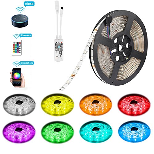 LED Strip Lights Work with Alexa, Google Home, IFTTT, Wifi Wireless Smart Phone Controlled 5M 16.4ft RGB Led Rope Lights Kit