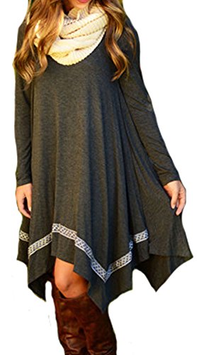 Leezeshaw Womens Long Sleeve Loose Irregular Hem Autumn Dress