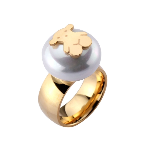 Little Bear Ring Vacuum Plating Artificial Pearl Titanium Steel Fashionable Women Jewelry Decorations