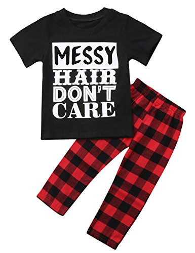 Little Girls Short Sleeve Messy Hair Don’t Care Letters Print T-Shirt and Pants Outfit Summer(4T,Red)