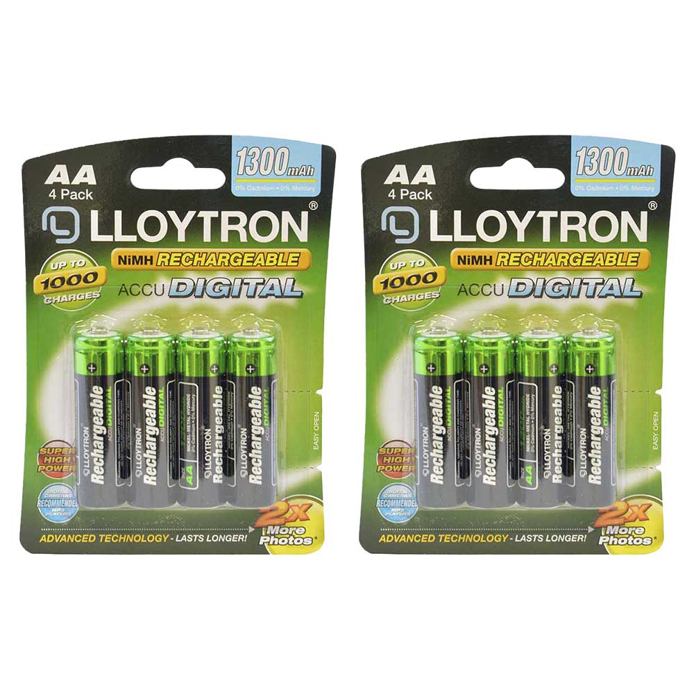 Lloytron ACCU DIGITAL AA HR06 Ni-Mh Rechargeable Batteries 1300mAh – Value 8 Pack