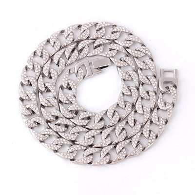 Luxury Full Rhinestone Diamond Silver Cuban Link Chain Necklace