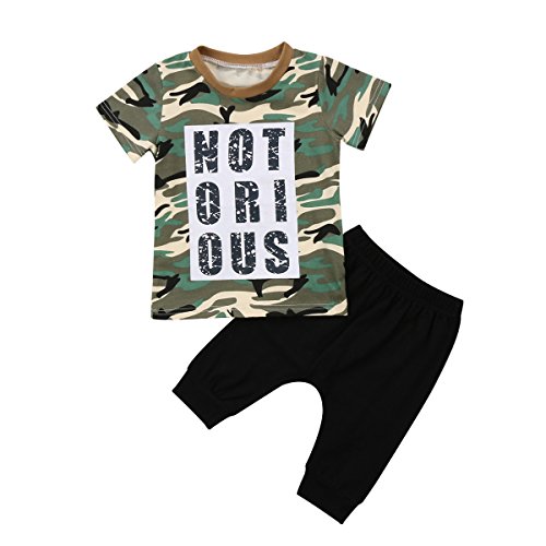 Ma&Baby Toddler Baby Boy Clothes Short Sleeve Camo T-Shirt +Black Pants Outfits Tops Set (5-6 Years)