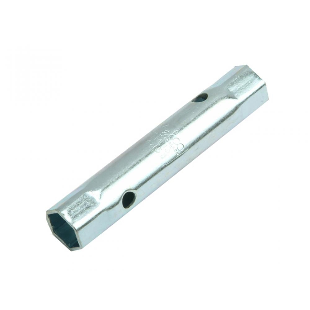 Double ended box spanners are thinner than a socket and are much longer so that they can be used to loosen or tighten bolts and nuts in narrow recesses, meaning that they are often used in plumbing maintenance and automotive repair. This tubular box spanner is made from bright plated steel and able to accommodate a tommy bar.Size 18 x 21mm Length 150mm (6 in)
