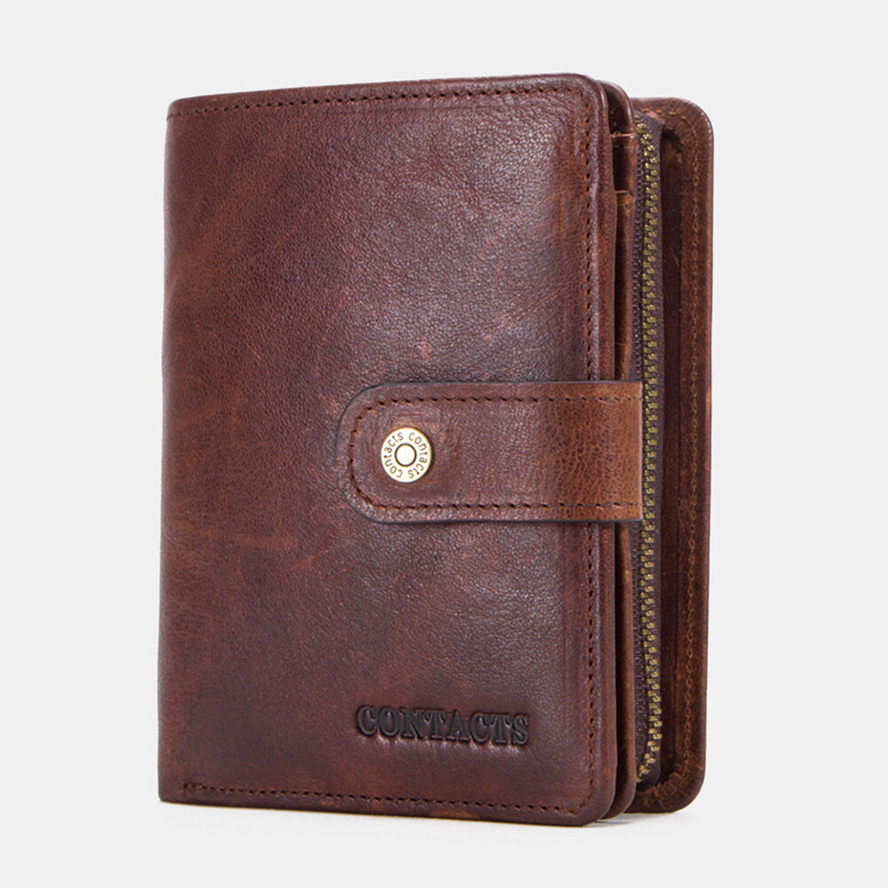 Men Genuine Leather Vintage RFID Blocking Zipper Coin Bag Wallet Card Holder
