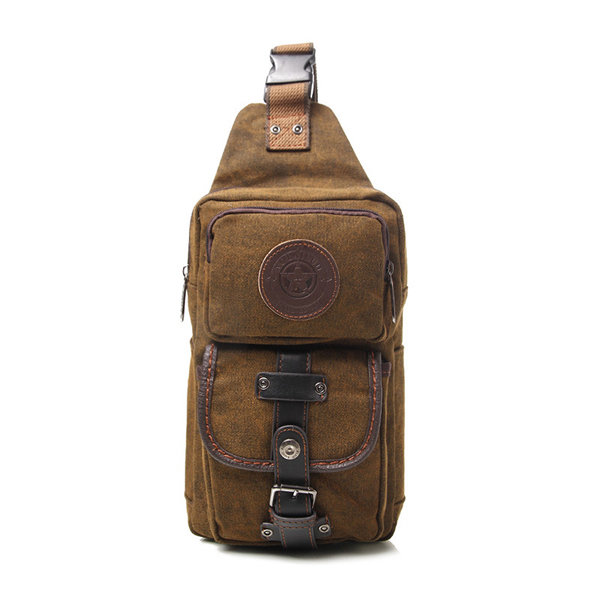 Men Retro Canvas Outdoor Sport Crossbody Bag Korean Style Vertical Shoulder Chest Bag