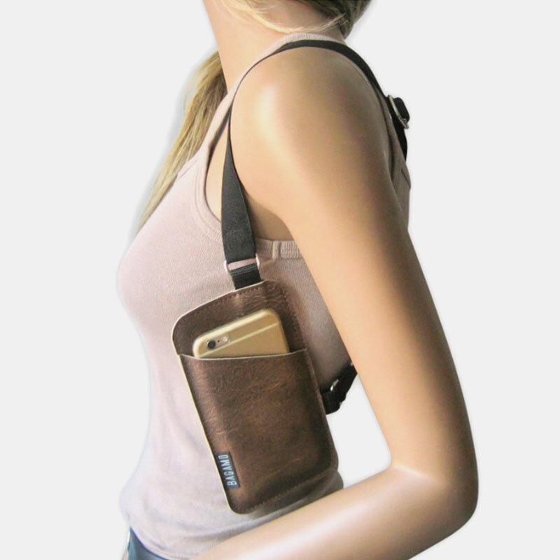 Men Women Genuine Leather Retro Solid Outdoor Phone Case Phone Bag