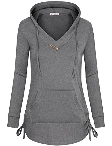 Messic Womens Fleece Sweatshirts, Ladies Long Sleeve Hooded Blouse Breathable Knitted Slim Trendy Hoodie Tops(Medium,colorful Grey)