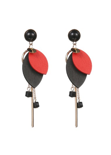 Metal Bar Pendant Leaf Shape Earrings for Woman