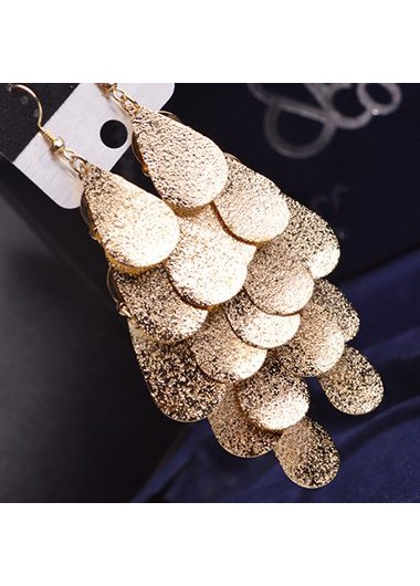 Metal Fish Scale Embellished Pendant Gold Earrings