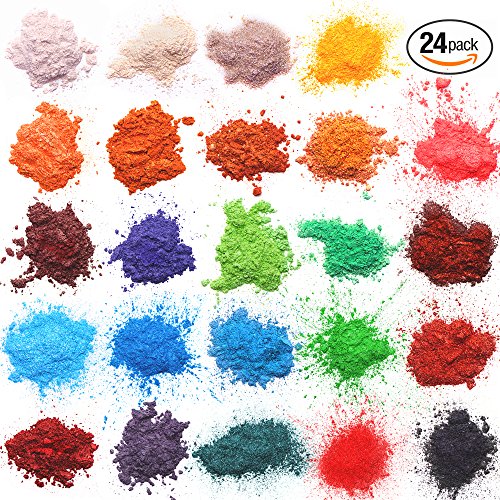 POWDERED PIGMENTS SET: The 24 coloring soap bath bomb dyes in this set are mica powder dyes that melt fast and easy and are ideal for soap making you can only dream of. These mica powder organic for soap molds are bath bomb colorants as well as superb soap dyes like no other ones
