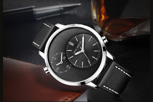 MINI FOCUS Fashion Genuine Leather Dual Display Men Watches Dual Quartz 3ATM Water-resistant Luminous Casual Man Wristwatch