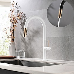Minimalisht Style Brass High Arc Kitchen Faucet,Rotatable Pull-out/Pull-down Nickel Brushed/Painted Finishes Single Handle One Hole Kitchen Taps with Hot and Cold Switch Lightinthebox