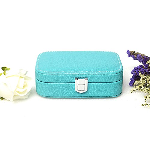 Mirrored Travel Jewelry Box Organizer Display Storage Case for Rings Earrings Necklace Makeup Storage Case for Women Girls,Blue