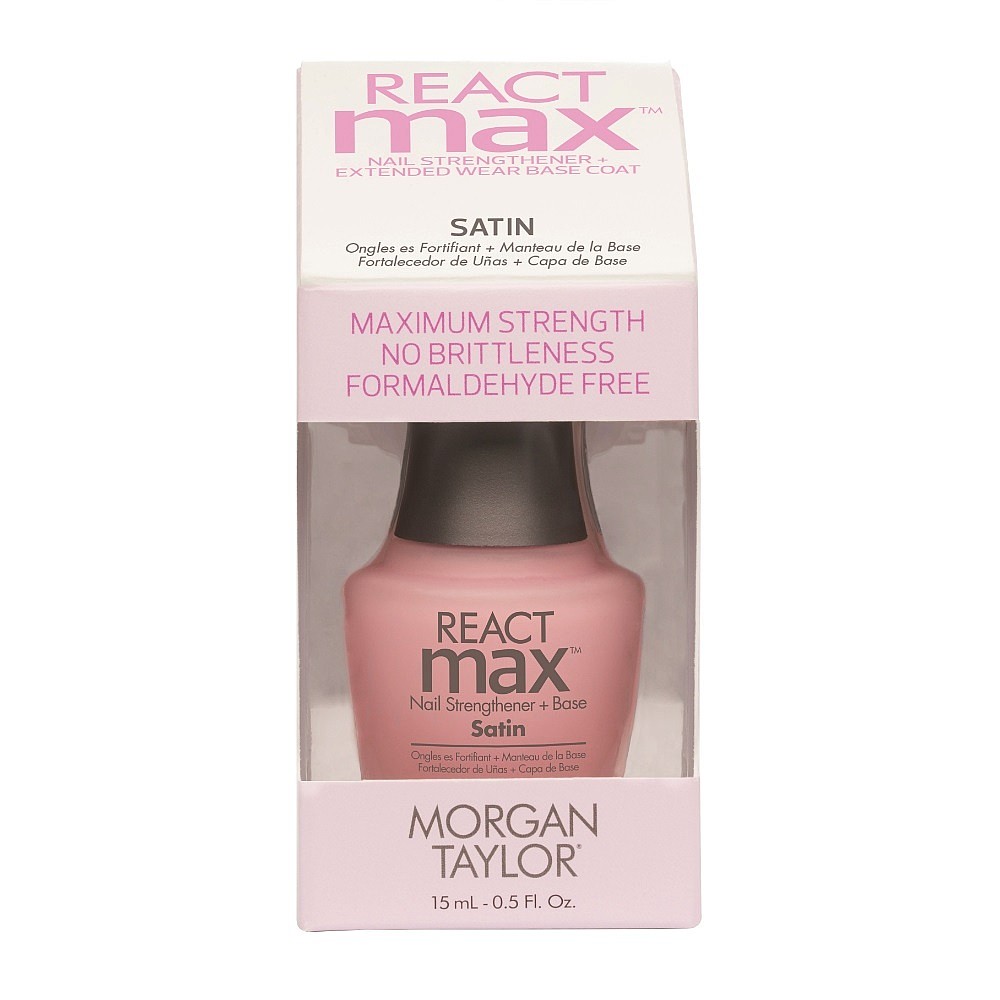 Beauty is strong and flexible, chip-free nails. Morgan Taylor REACTmax Nail Strengthener Base Coat create strong, flexible nails that work (and play) as hard as you do! With REACTmax there is zero chance of nail over-hardening. These maximum strength formaldehyde-free formulas offer up to 10 days wear with Gelish-infused technology.