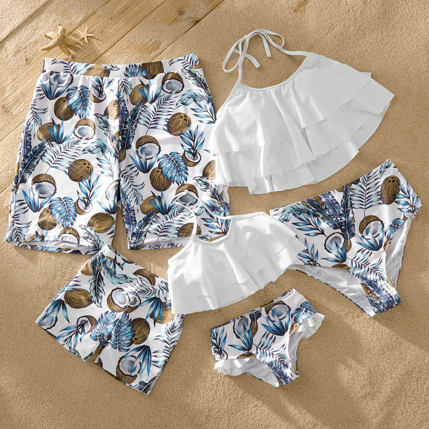 Mosaic Family Matching Coconut Ruffle Halter Swimsuits