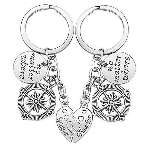 BEST MOTHER DAUGHTER GIFT: No Matter Where Compass Split Broken Heart Keychain Set for mother and daughter