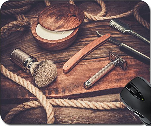 MSD Natural Rubber Mousepad Mouse Pads/Mat design: 37931405 Shaving accessories on a luxury wooden background