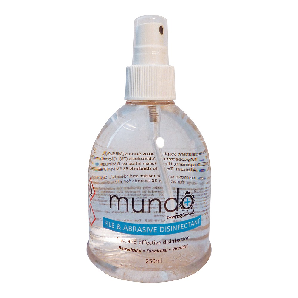 mundo file and abrasive spray 250ml specially formulated for files and abrasives bactericidal, fungicidal, virucidal and sporicidal