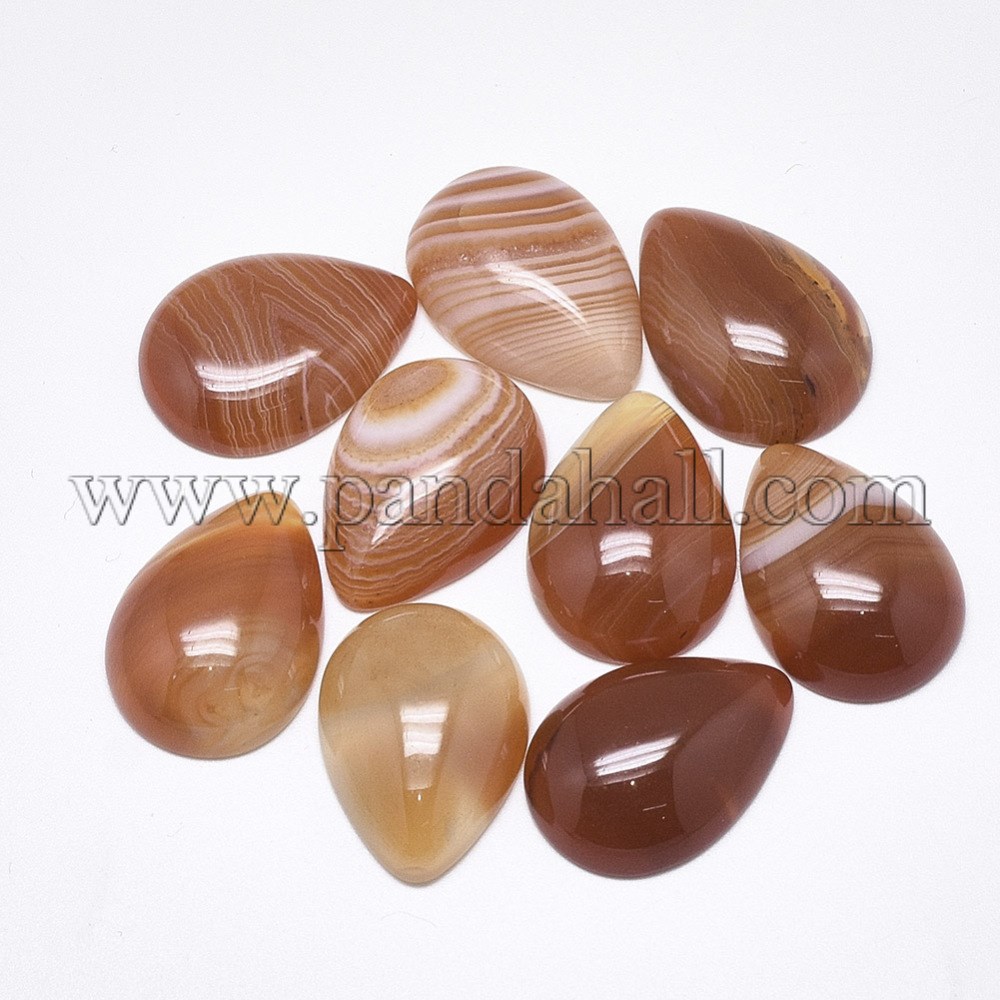 Natural Banded Agate/Striped Agate Cabochons, Dyed, Teardrop, SiennaSize: about 25mm long, 18mm wide, 6~7mm thick.