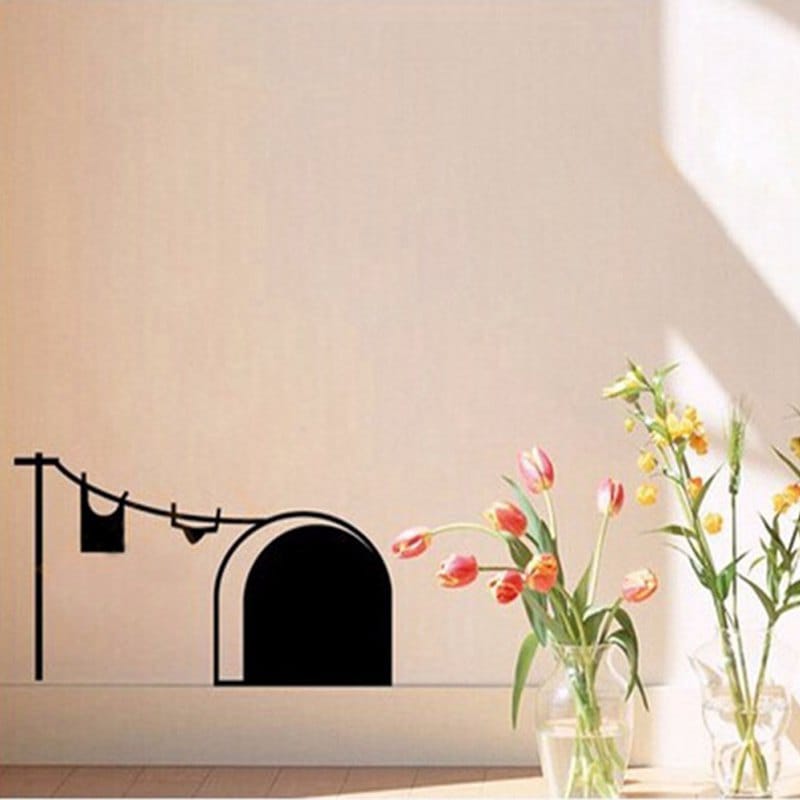 New Cute Cartoon Mouse Home Sticker Wall Decor Mouse Hole Children Decor Vinyl Decal