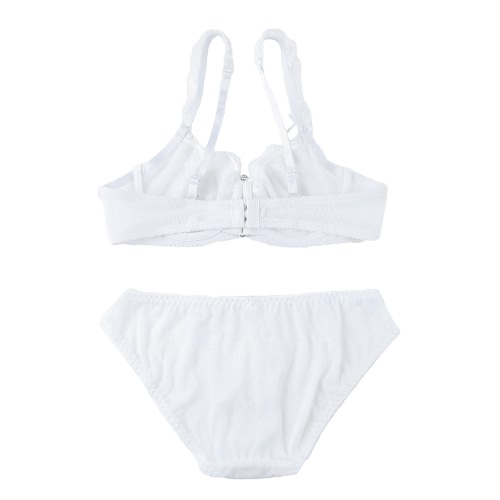 features 3/4 moulded cups, underwire for push-up support, hook-and-eye back closure, adjustable shoulder straps and matching low-rise briefs. Pair it with thigh-high stockings to make a more charming look.