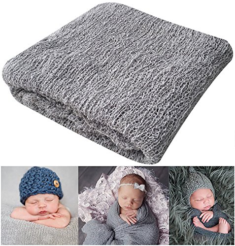 Newborn Photography Props Newborn Baby Stretch Long Ripple Wrap Yarn Cloth Blanket by Bassion, Grey, 16″ x 60″