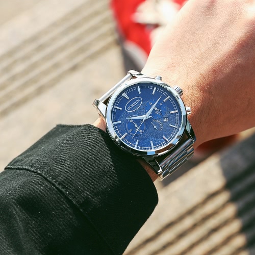 OCHSTIN Luxury Stainless Steel Men Business Watch Quartz Water-Proof Chronograph Sports Style Casual Wristwatch Masculino Relogio + Box