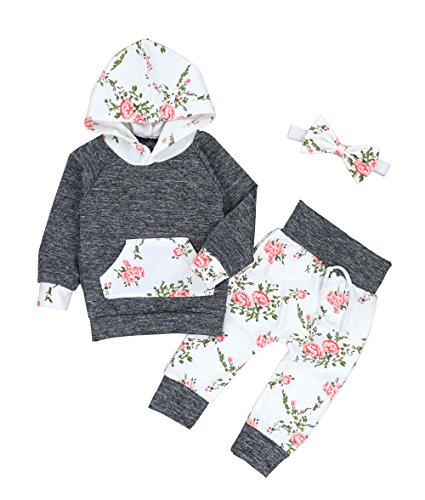 Oklady Christmas Baby Girls Florals Outfit Set Long Sleeve Hoodie Sweatshirt with Headbands(6-12 Months)