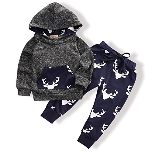oklady Toddler Infant Baby Boys Deer Long Sleeve Hoodie Tops Sweatsuit Pants Outfit Set(12-18 Months)
