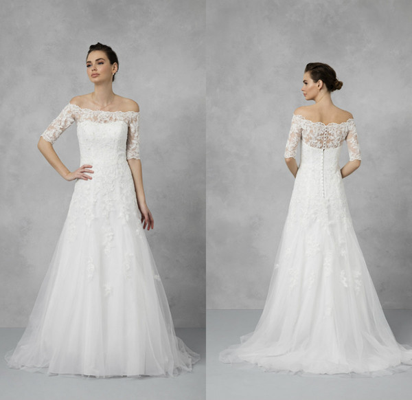 Oleg Cassini Modest Wedding Dresses with Long Sleeves Lace Applique Off The Shoulder West Country Wedding Dresses Plus Size Bridal Gowns