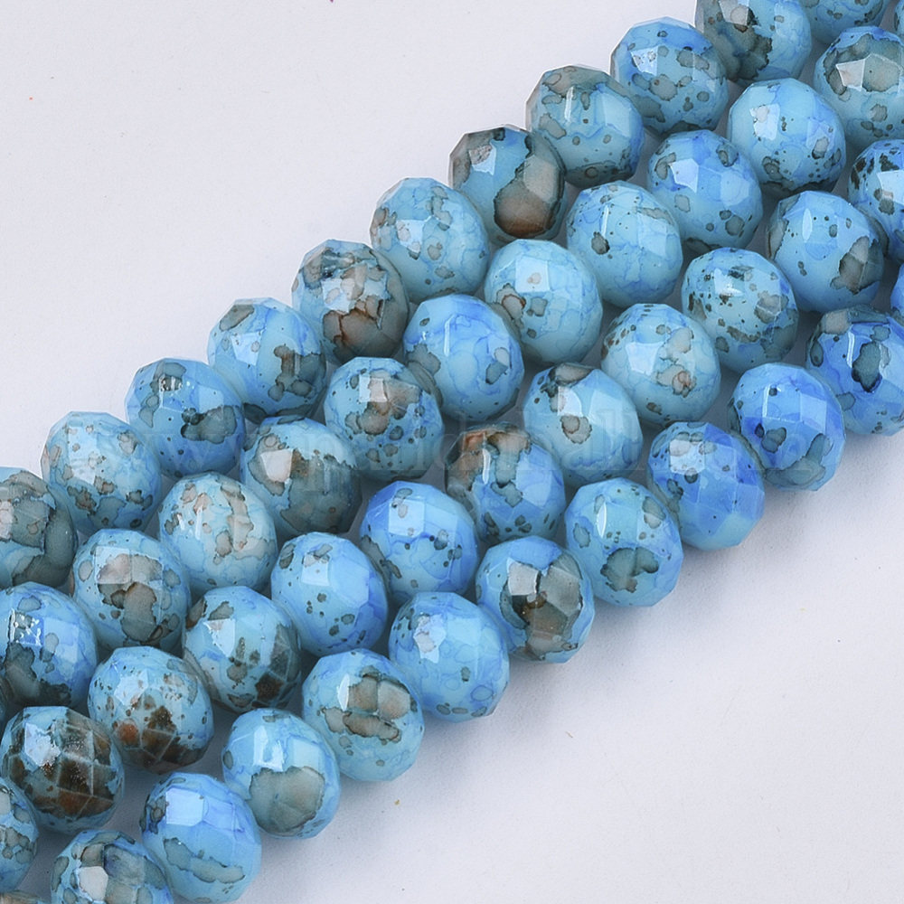 Opaque Spray Painted Glass Beads Strands, Faceted, Rondelle, DeepSkyBlueSize: about 8.5mm in diameter, 6mm thick, hole: 1.2; about 72pcs/strand, 16.34”.