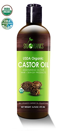 Organic Castor Oil By Sky Organics 16oz: Cold-Pressed, 100% Pure, Hexane-Free Castor Oil – Moisturizing & Healing, For Dry Skin, Hair Growth – For Skin, Hair Care, Eyelashes – Caster Oil