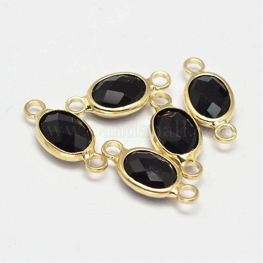 Oval Faceted Golden Brass Glass Links/Connectors, BlackSize: about 6.5mm wide, 15mm long, 3.2mm thick, hole: 1mm.