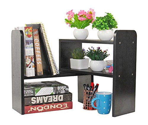 PAG Desktop Bookshelf Adjustable Countertop Bookcase Office Supplies Wood Desk Organizer Accessories Display Rack, Black