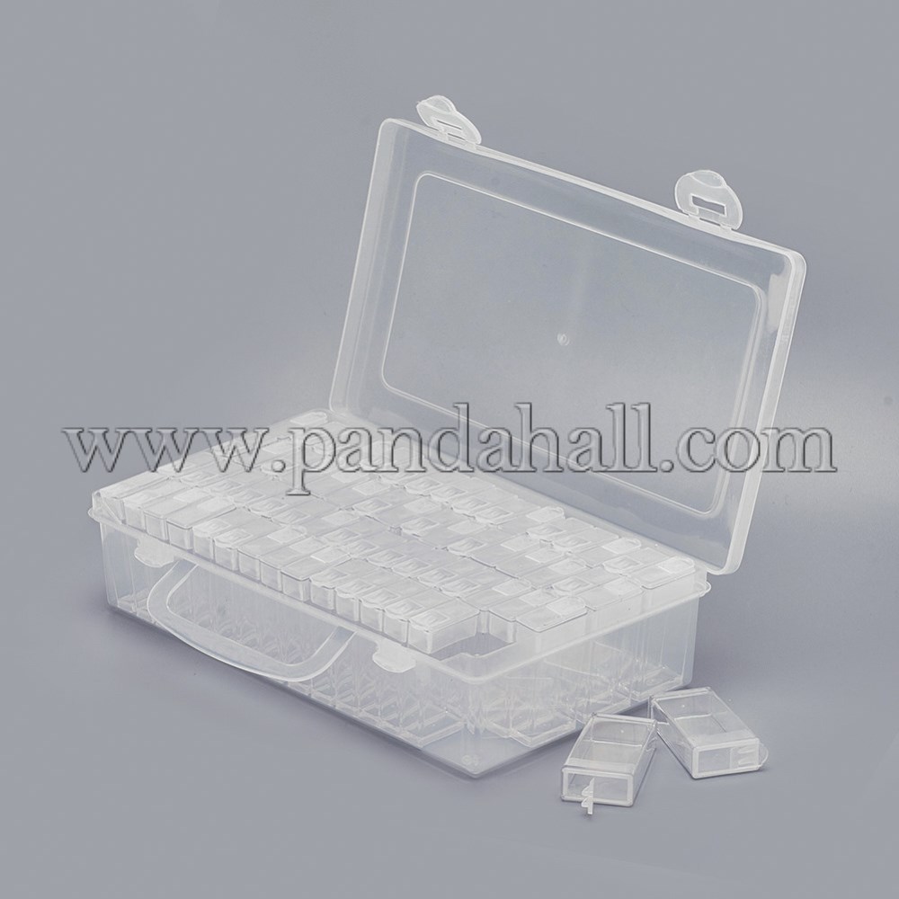 Plastic Bead Containers, Flip Top Bead Storage, For Seed Beads Storage Box, Rectangle, Clear, 50x27x12mm, Hole: 9x10mm; Packing Box: 13×22.5×5.5cm; 64pcs containers/packing box, 192pcs containers with 3pcs packing box