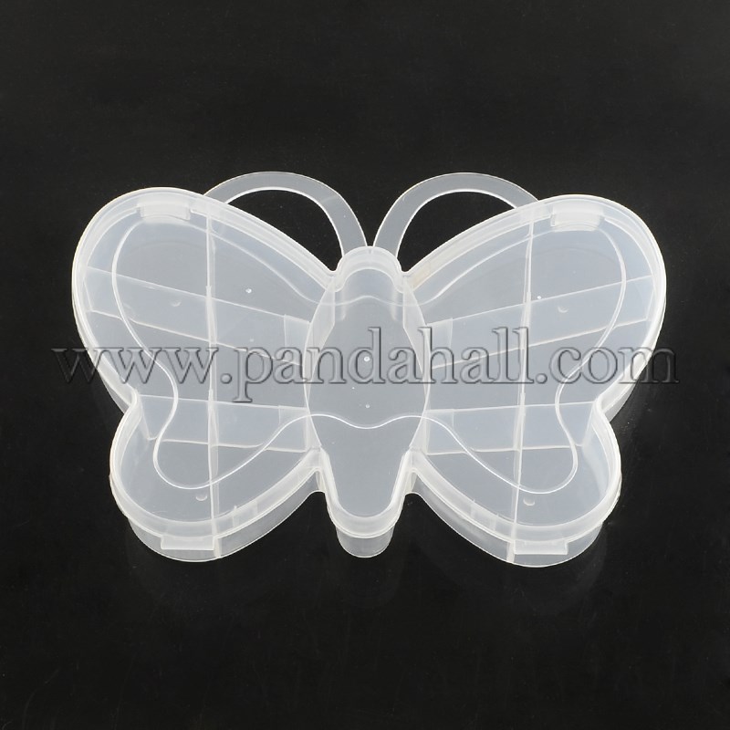 Plastic Bead Storage Containers, 13 Compartments, Butterfly, ClearSize: about 147mm long, 185mm wide, 25mm thick, inner: about 39~96×27~42mm.