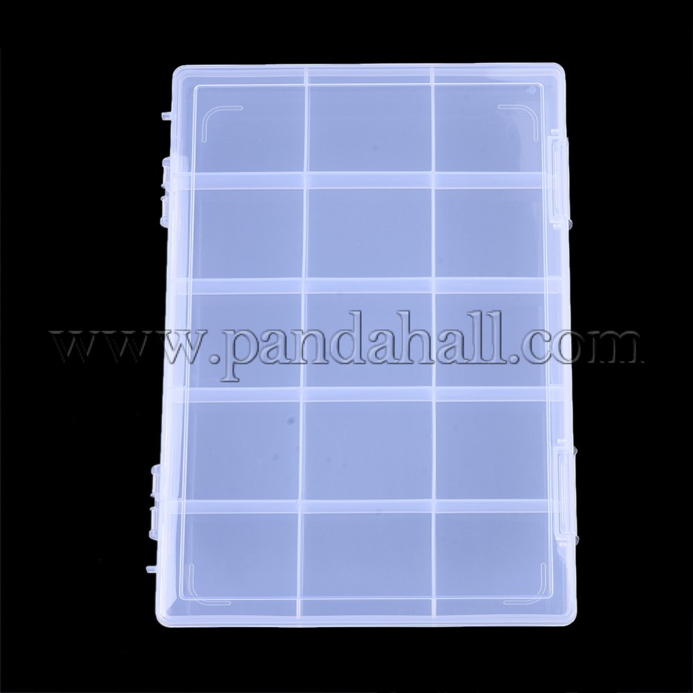 Plastic Bead Storage Containers, 15 Compartments, Rectangle, ClearSize: about 28.5cm long, 19.5cm wide, 2.2cm thick; compartment: 53.5x60mm.