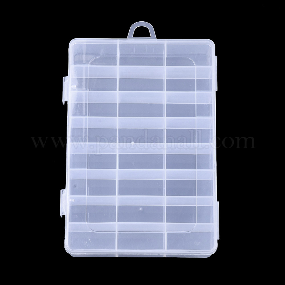 Plastic Bead Storage Containers, 24 Compartments, Rectangle, ClearSize: about 19.5cm long, 13cm wide, 3.6cm thick, hole: 10×15.5mm; compartment: 22x41mm.